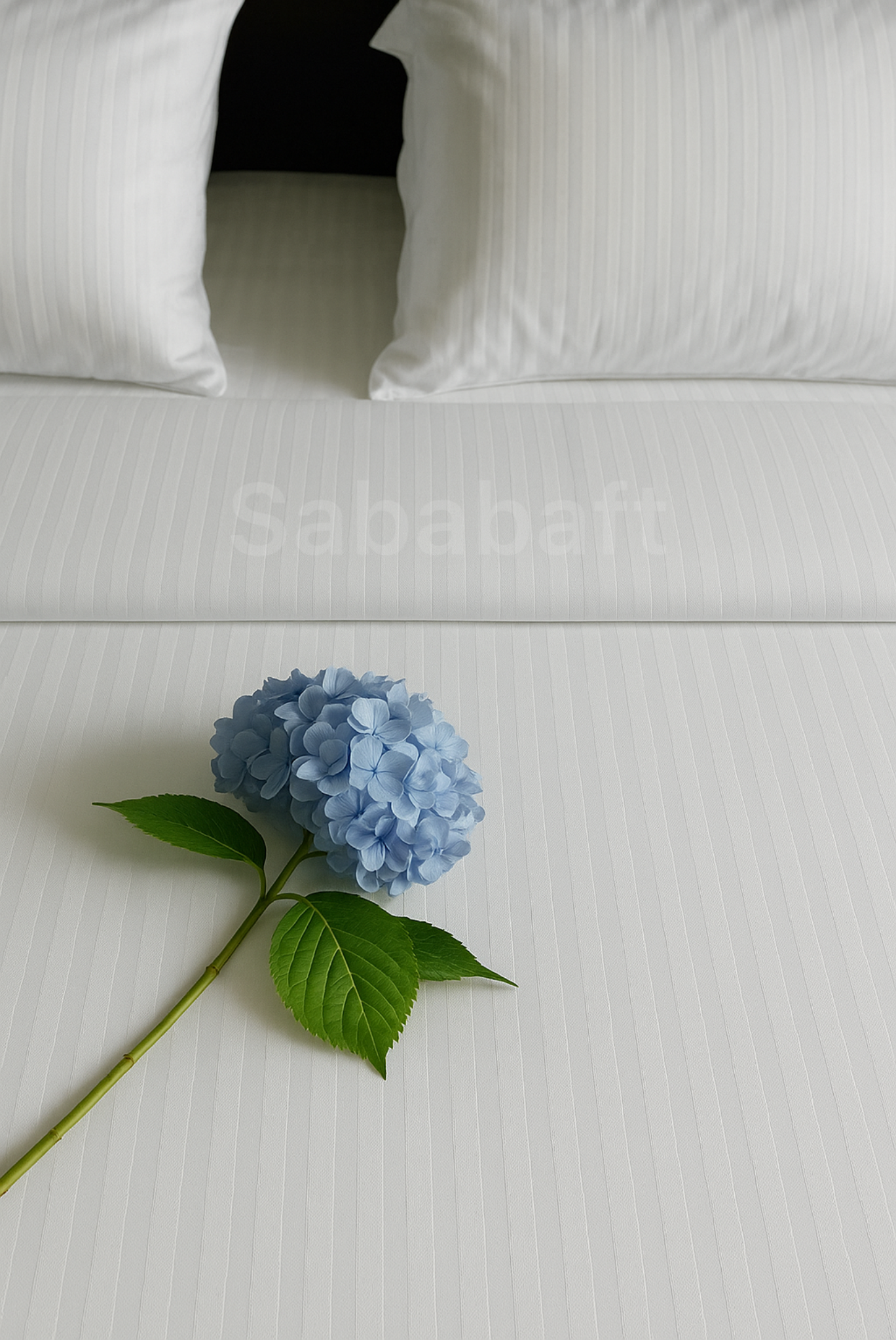 نیم ست ملحفه دونفره صبابافت مدل سفید راه راه هتلی ۱۰۰ درصد پنبه ای۱٬۷۶۰٬۰۰۰ تومان